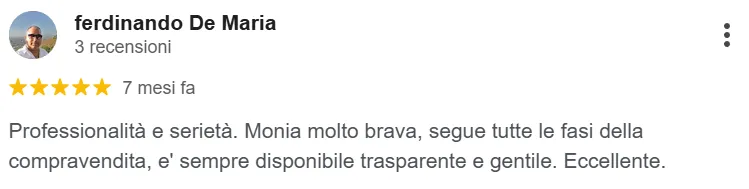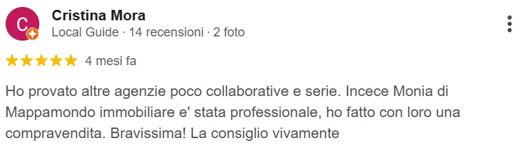 “Ho provato altre agenzie poco collaborative e serie. Invece Monia di Mappamondo Immobiliare è stata professionale, ho fatto con loro una compravendita”